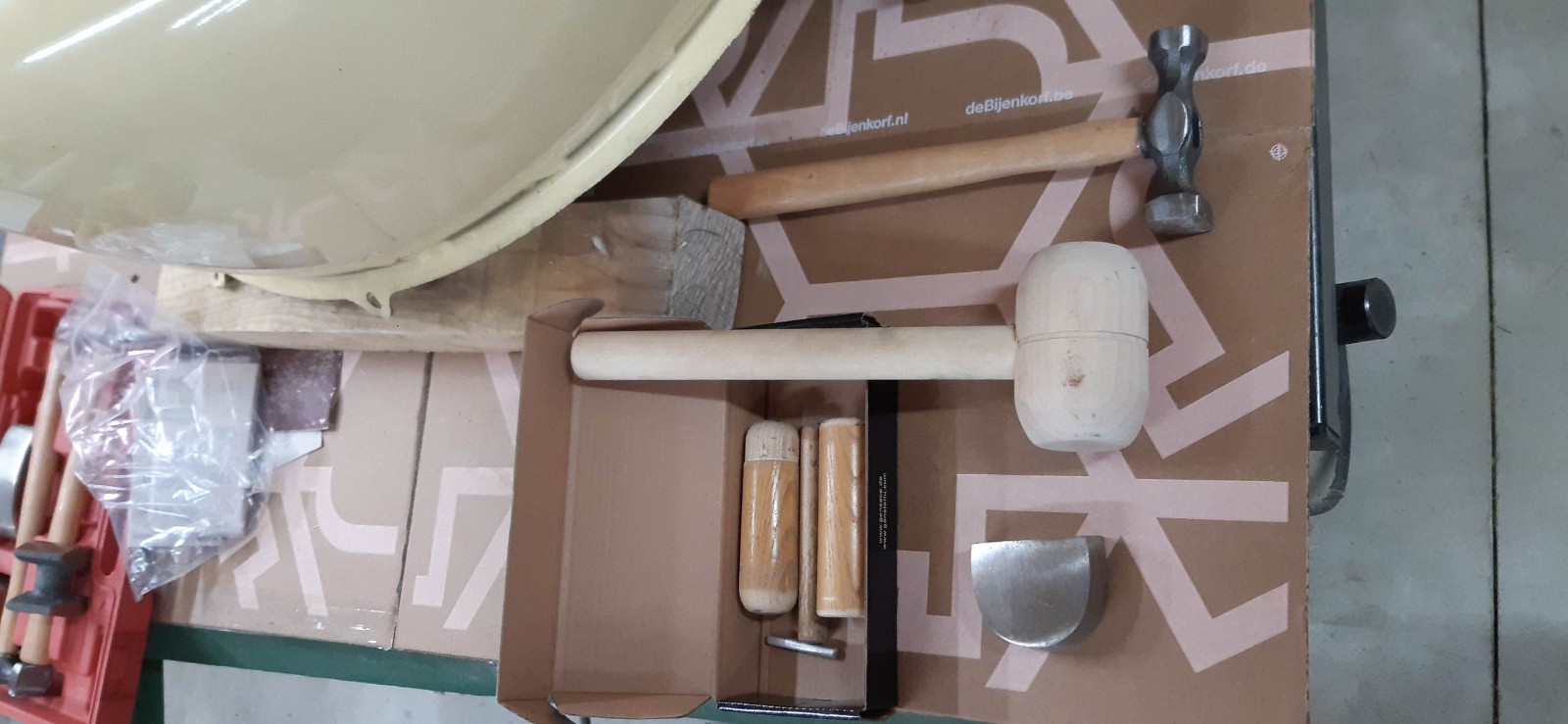 L'aile D avait été ravagée pour la redresser à la grosse, s'en est donc suivi une longue séance de redressage des petits et gros bobos, notamment à l'aide d'outils maison en prime d'un kit basique de carrossier :