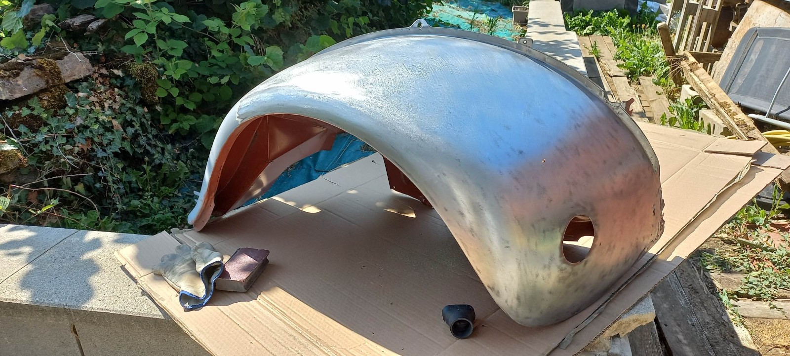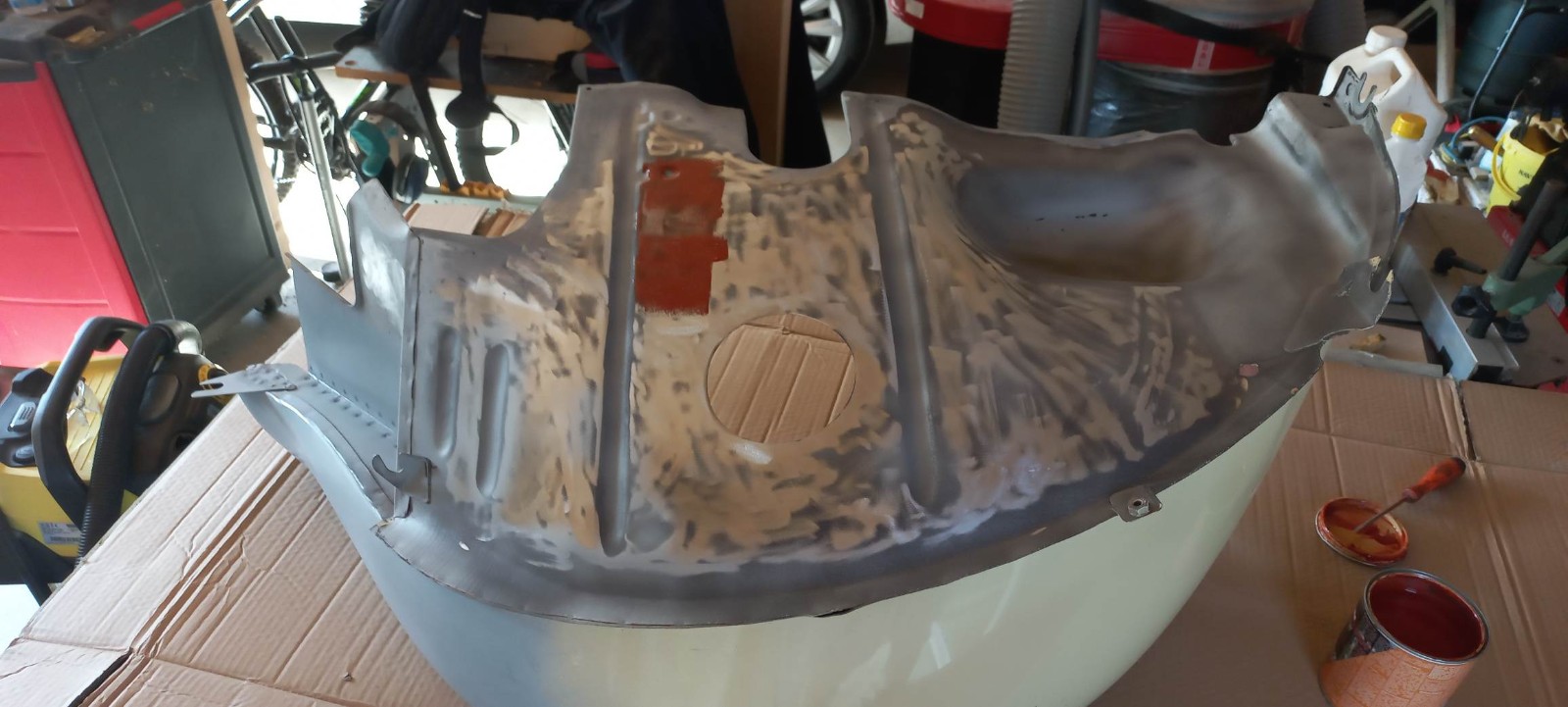 Reponçage de toutes les zones abîmée (presque tout)2 couches d'appret phosphatant, une de garnissage, je vais pouvoir peindre !