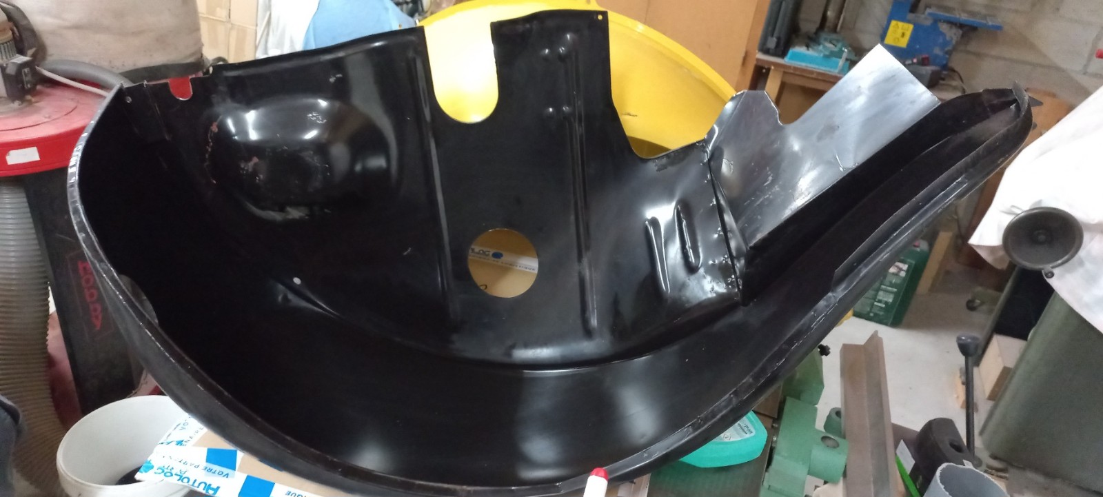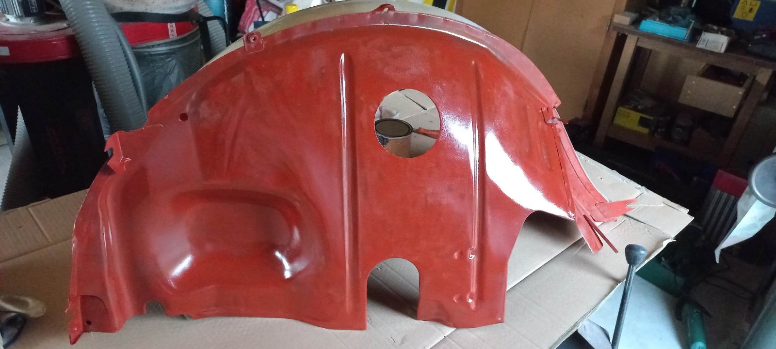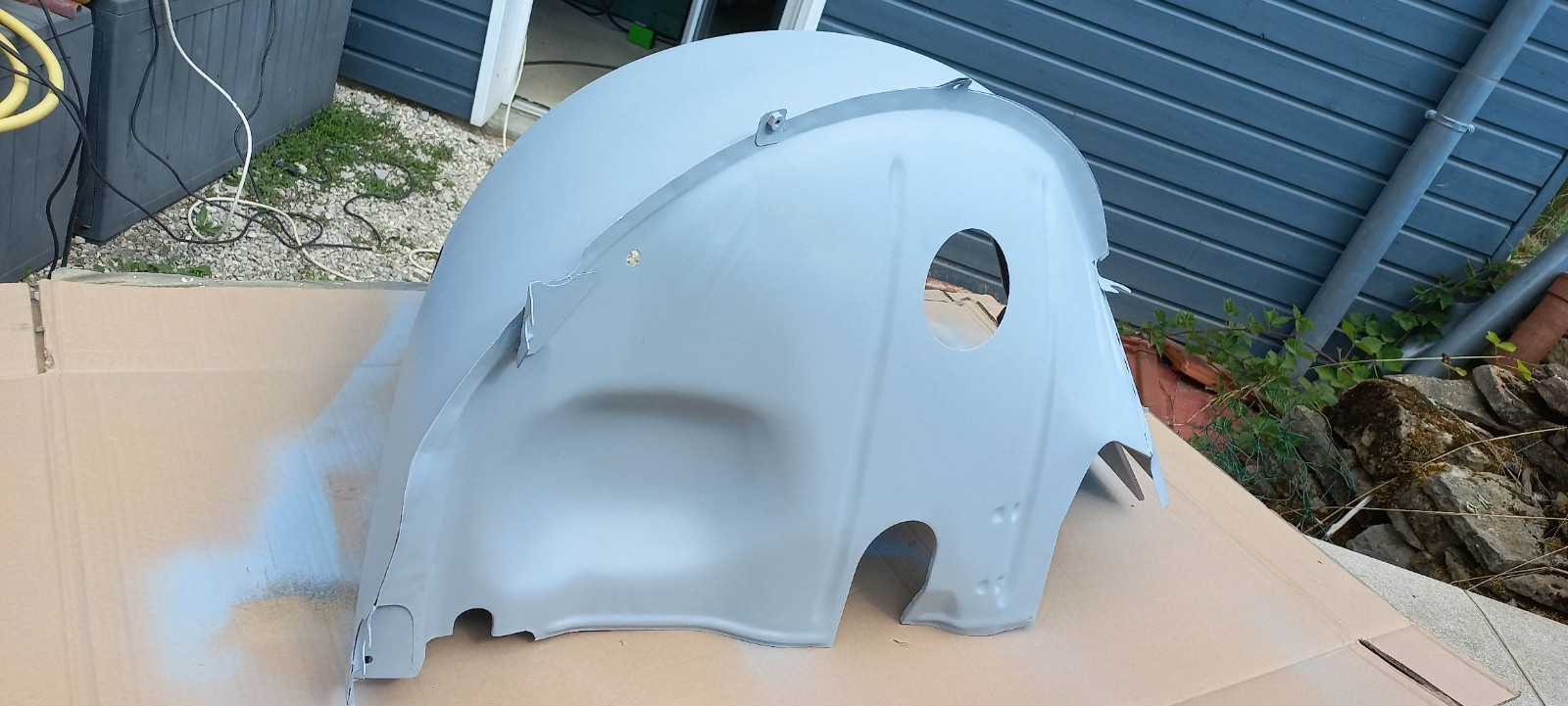 Il me restait un petit fond de peinture, j'en ai profité pour passer cette peinture au pinceau sur le bord intérieur de l'aile pour bien protéger cette zone, qui n'est pas facile d'accès au pistolet...