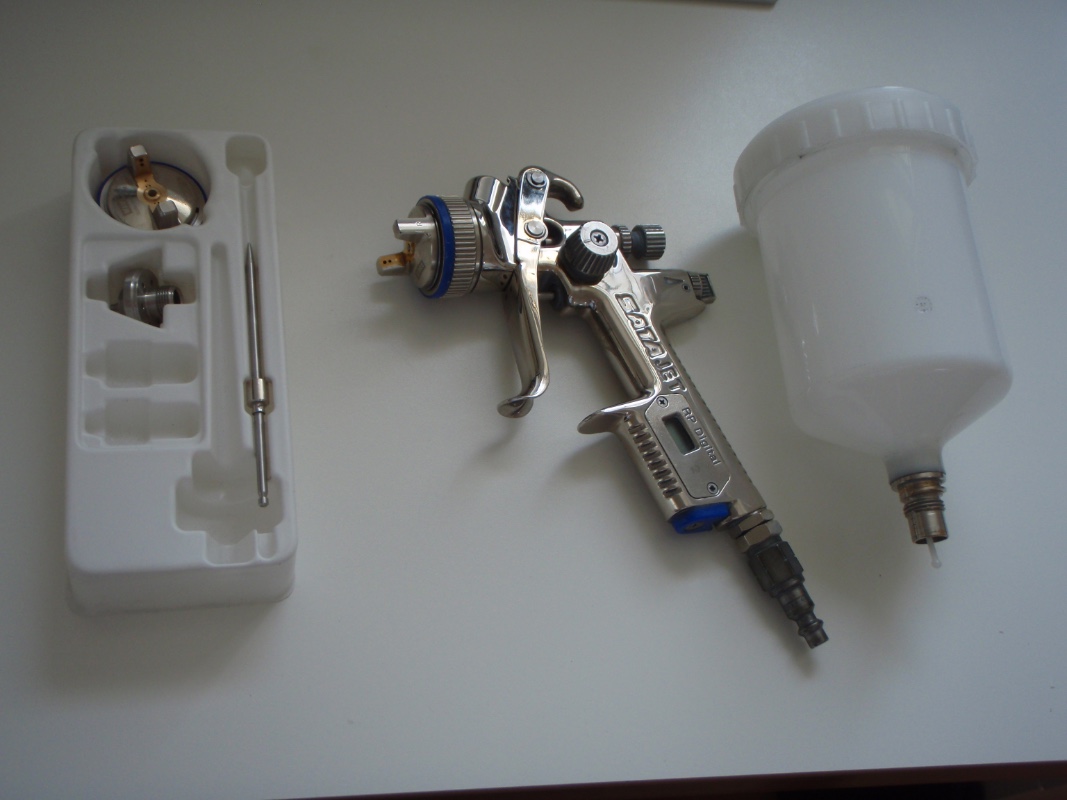 comme j'aime bien l'outillage, je me suis offert du Sata en occasion ... Un classique et un en HVLP. Buses 1,3 & 1,5.