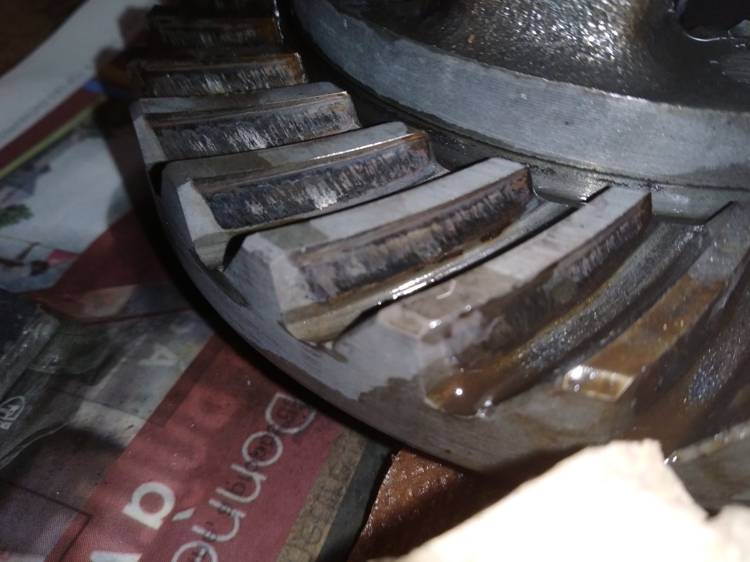 J'ai également déshabiller le pignon conique de la 1ère BV. Il y a des reflets violets sûrement liés à l'échauffement.