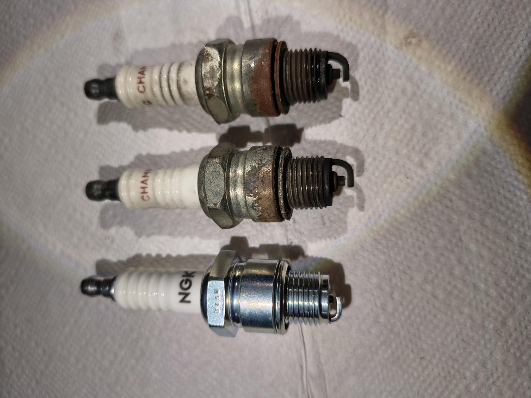 Les bougies sont, elles, dans un sale état. Celle présentant des traces d'huile correspond au cylindre de gauche.