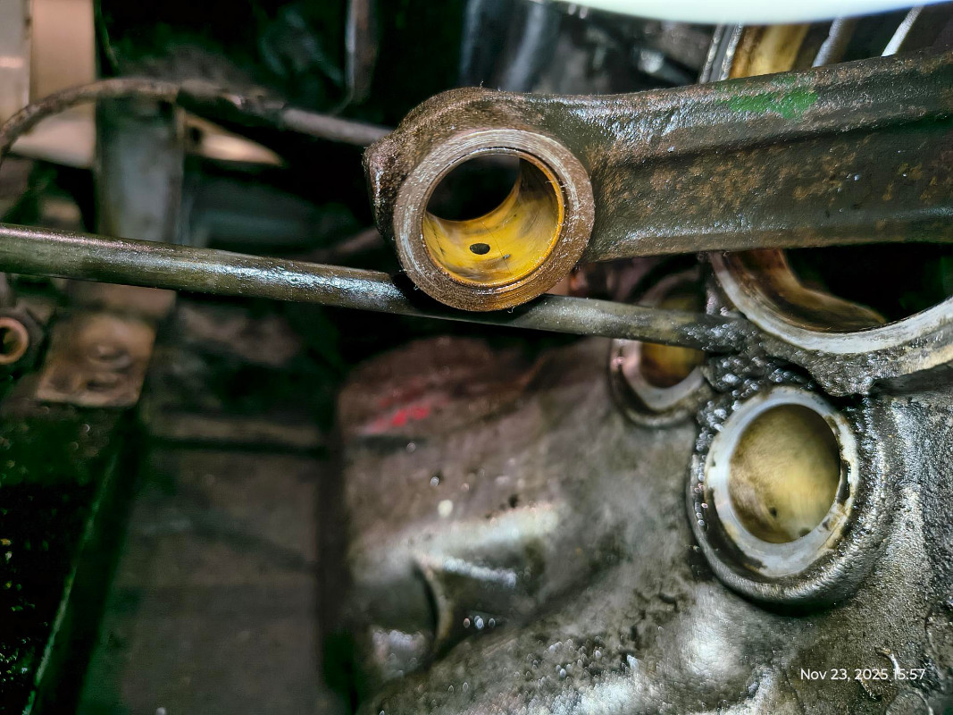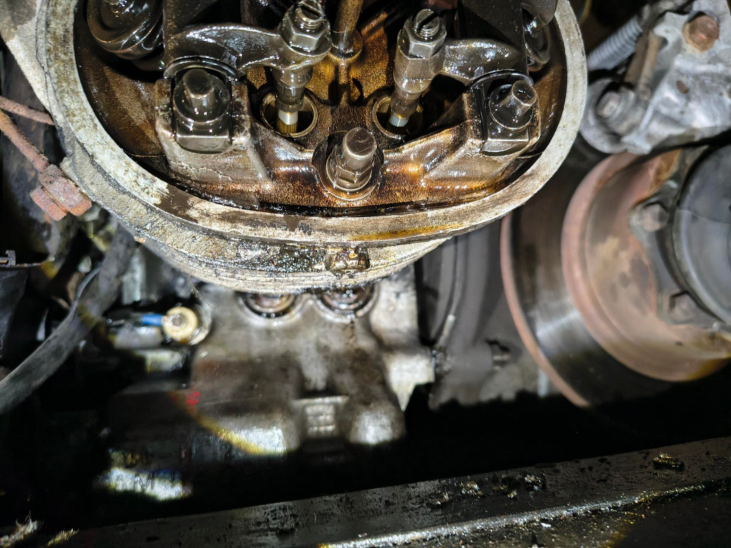 On note des traces d'huiles fraîche près des joints lunettes, mais aussi (et c'est peut être la source principale) depuis le joint d'un cache culbuteur.