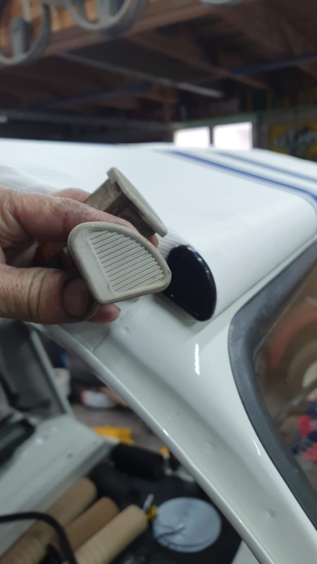 Pour les joints de vitres AR, comme tous, ils étaient 'raccourcis' et 'déssoudés', c'est finalement à la cyano qu'ils ont été remontés... j'y remettrai peut-être un petit joint silicone noir (ou colle pare-brise) en masquant bien le tour pour finir ça proprement.