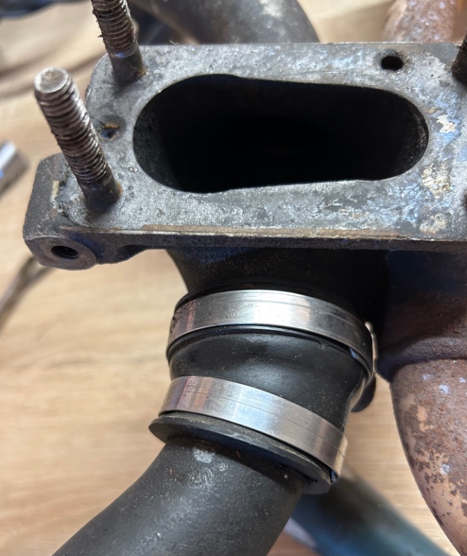 Je croyais qu'elle avait été bricolée car il y a un manchon en caoutchouc qui permet de désolidariser l'une des pipes d'admission, mais il semblerait que la pièce ait été conçue ainsi lorsque j'ai desserré et retiré le manchon. Il y a un épaulement exprès pour l'emboiter et les partie s'insèrent parfaitement l'une dans l'autre.