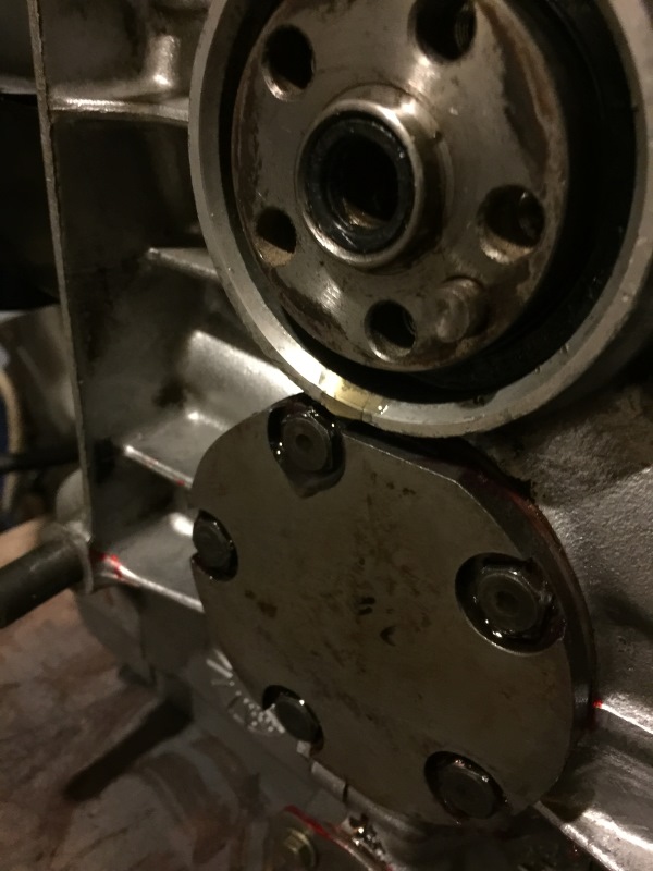 je vais tenter, j'ai déposé le moteur tout a l'heure et j'en ai profité pour faire des photos de l'arrière du bloc, j'ai commandé un bouveau joins spi de sortie de vilo, je me demande si le neuf n'a pas un soucis beaucoup d'huile dans la partie inferieur et j'ai l'impression que je l'ai trop enfoncé dan le logement quand je vois des photos, il semble plus affleurer le carter que ce que j'ai, il est enfoncé de presque 5mm par rapport au bord!