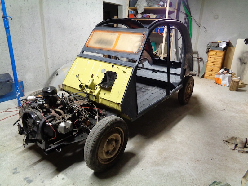 voilà donc la suite des photos, avec le démontage de l'auto (réalisé tranquillement en une petite journée, c'est tellement simple une 2cv :clap: ):