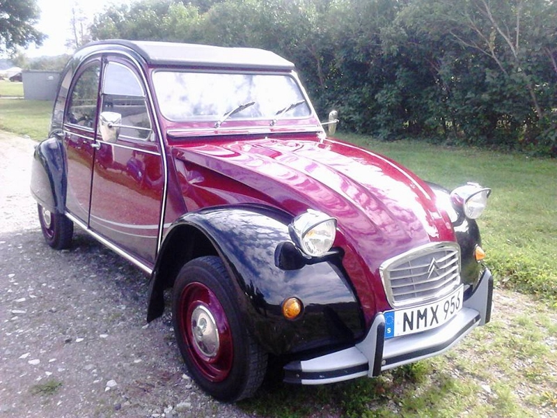 Sébastien, j'habite a Stockholm (Suede) depuis 4 ans, ma premiere voiture quand j'avais 18 ans c'etait une 2cv6 speciale rouge, je l'ai eu un an et demie, et puis je me suis marié en juin, ma femme aimant cette voiture voulais qu'on arrive a la ceremonie aec une 2cv, nous avons rencontré qulqu'un ici qui en a une jaune de1958, elle est detoute beauté, et de mon coté pour faire une petite surprise, j'ai acheté une Charleston comme cadeau de mariage, pour nous deux!! :-) c'est notre seule voiture, elle ne roulera pas l'hiver dans la neige mais on en profite chaque fois q'uil fait beau.... bref, un retour a mes 18 ans.... si lointain maintenant!! ;-)