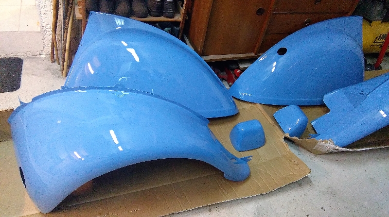 voici donc les premières pièces qui viennent de chez le carrossier bleue myosotis, comme d'origine...j'aime l'origine en général ! :tchin: , la peinture extèrieure, le seul truc que je fais pas !
