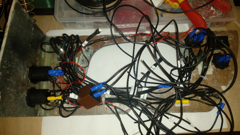 Petite remarque : j'ai l'impression, que tu n'as pas mis de passe-fil caoutchouc pour les traversées de tôle. Tu n'as pas peur que les vibrations et tressautements de la voiture risquent, à la longue, de cisailler la gaine de protection et que tout cela finisse en court-jus ? :|
