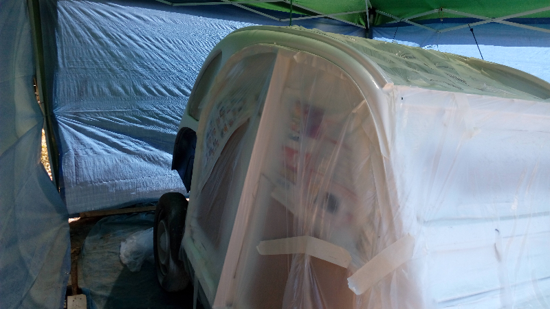 début de la peinture 2K blanche en 2 couches
