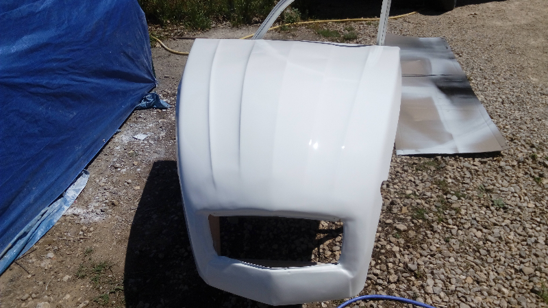 ensuite je commence la mise en peinture avec une peinture acrylique 2K en brillant direct (car la base mat avec le vernis c'est trop compliqué sans cabine de peinture )