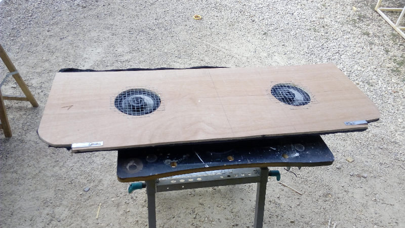 planche arrière en contreplaqué de 10 et feutrine ( la meme que j'ai utiliser pour les garniture intérieur