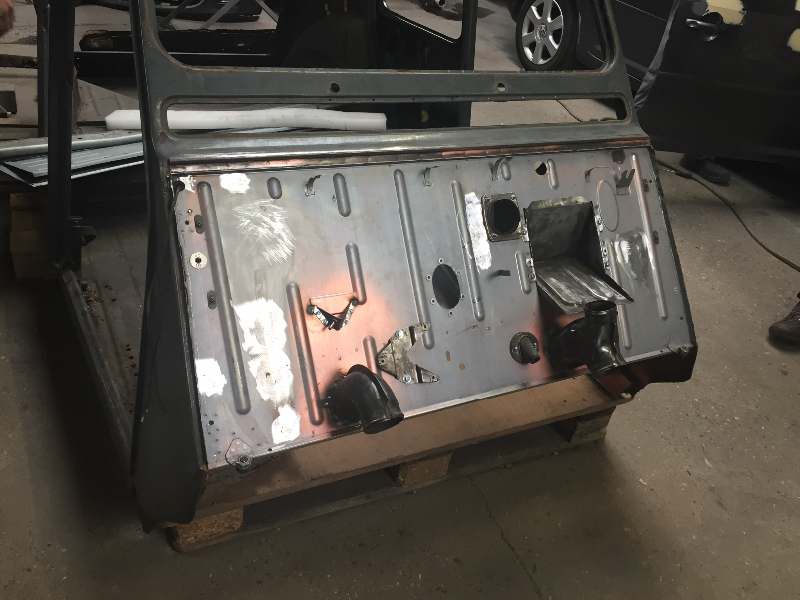 Quelques adaptations sont nécessaires sur le tablier (modif de la sortie de levier de vitesse, rebouchage de quelques trous, remontage des tuyaux d air) pour être comme à l'origine, ainsi que sur la tablette (guidage du frein à main ancien modèle au lieu de récent).