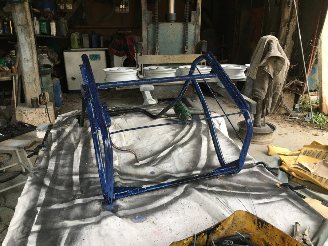 Je me suis occupé de poncer puis de traiter les armatures des sièges, qui n'étaient pas trop abîmées (elle étaient un peu rouillées à leur base).