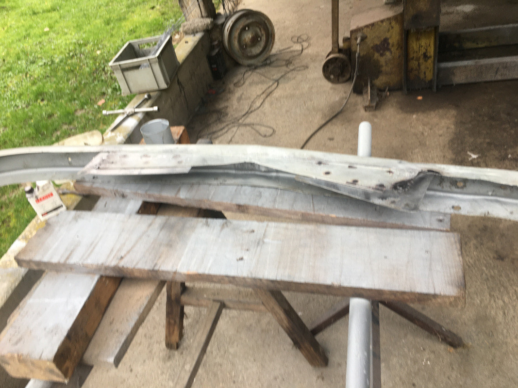 Il m'a fallu découper une nouvelle tôle et la souder par bouchonnage, rien de bien compliqué, mais j'ai aussi traité les tôles au FEROSE avant de repeindre le pare-chocs..