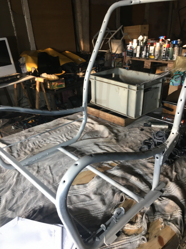 Plus sérieusement, j'ai collé la mousse sur les armatures des sièges. Franchement, je m'y suis mal pris, j'ai du utiliser des ficelles alors que j'aurais pu les sangler, mais je n'en avais pas sous la main...