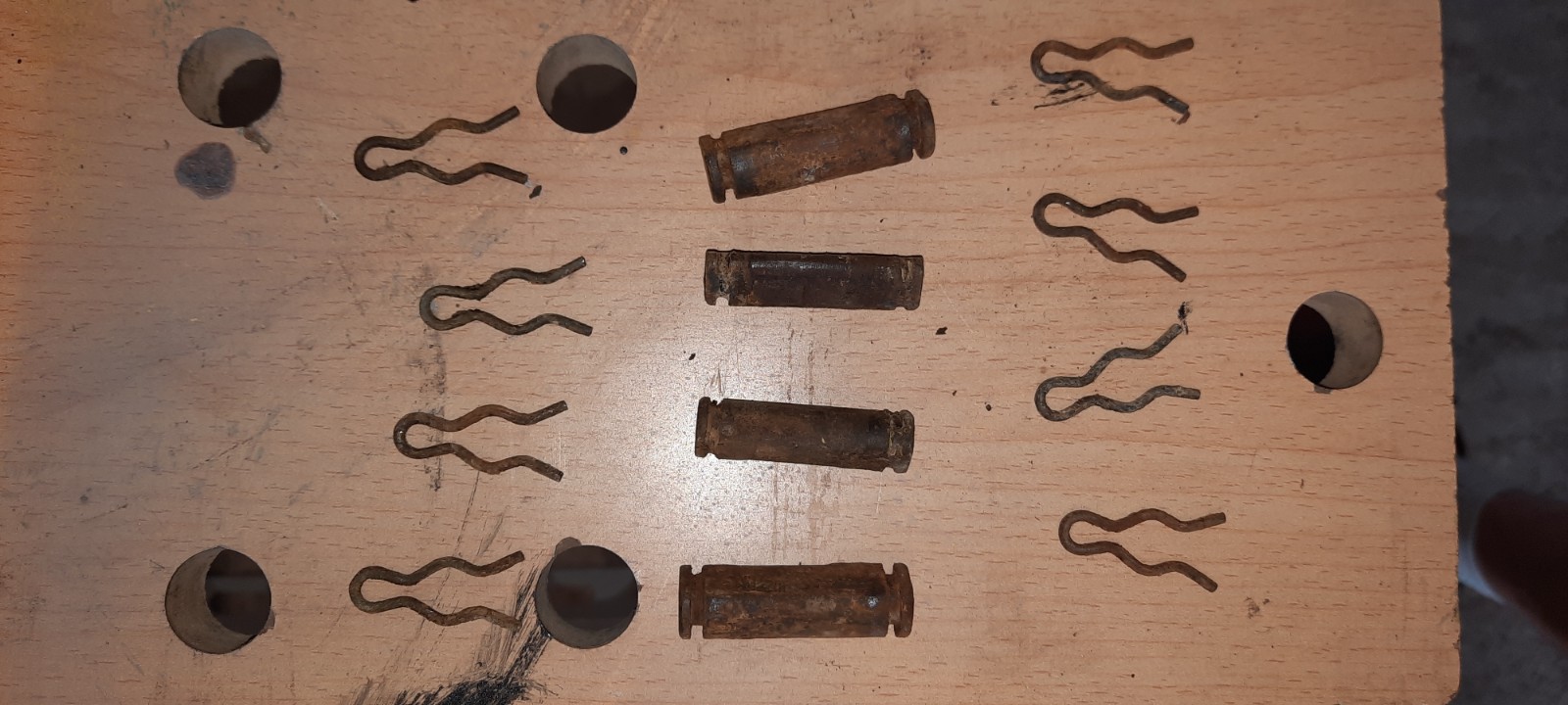 Nettoyage des axes et goupilles et ce matin on a pu tout remonter et graisser ce qu'il fallait. Les plus gros axes se montent à l'arrière