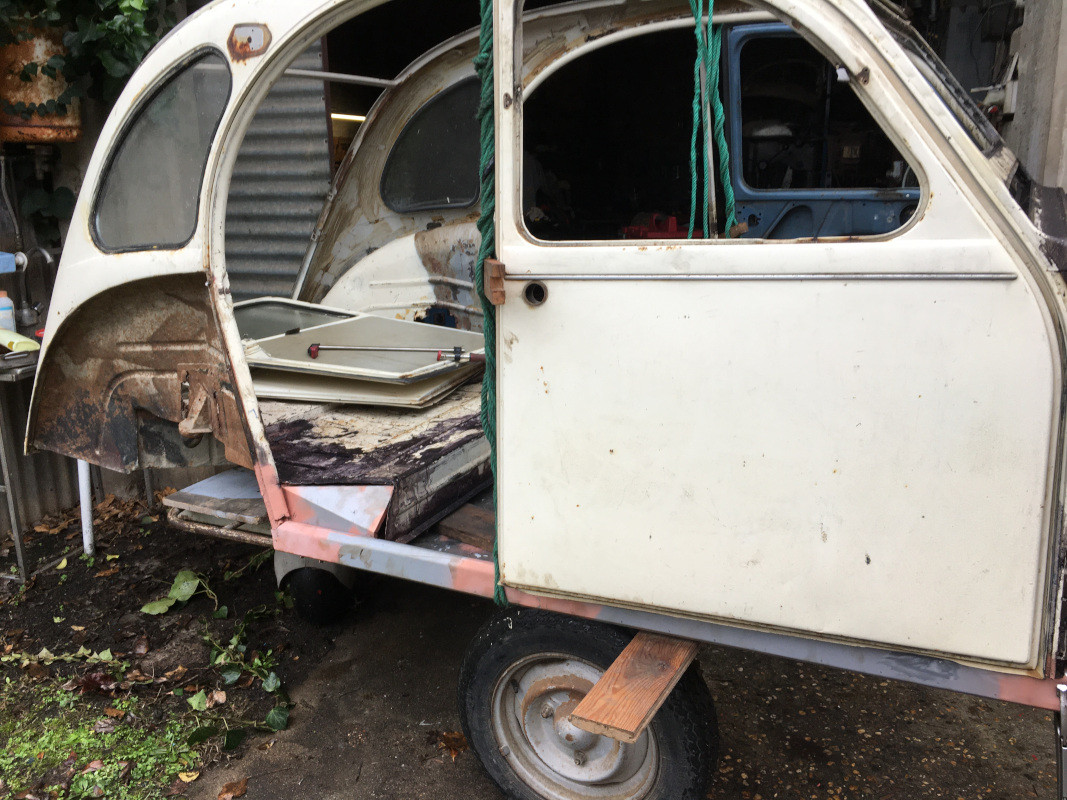 La porte arrière gauche s'est dessoudée à sa base, à l'endroit où je l'avais soudée, bien sûr, comme si la charnière mobile était trop loin de la fixe :