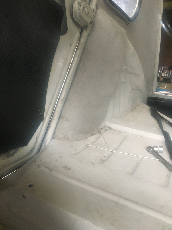 Ce matin, j'ai "terminé" la réparation du bas de la porte arrière gauche, côté charnière.