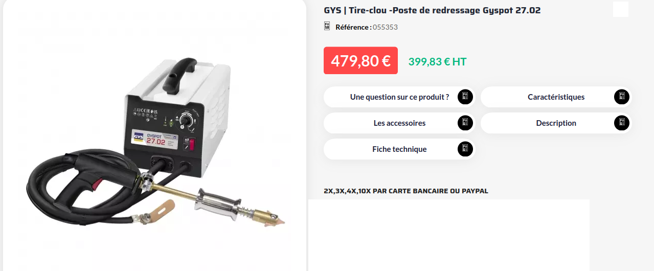 @JPA_47 , @Eric13190 merci pour ces liens, j'avais vu le débosselage à la colle, je connaissais plus ou moins le reste, n'en ayant eu l'utilité, hormis les petits embouts qui se vissent sur le stylo bien pratiques pour les ondulations du fond de coffre entre autres. Je vais étudier cela sachant que la tôle allemande (désolé Jean-Pierre pour le mur