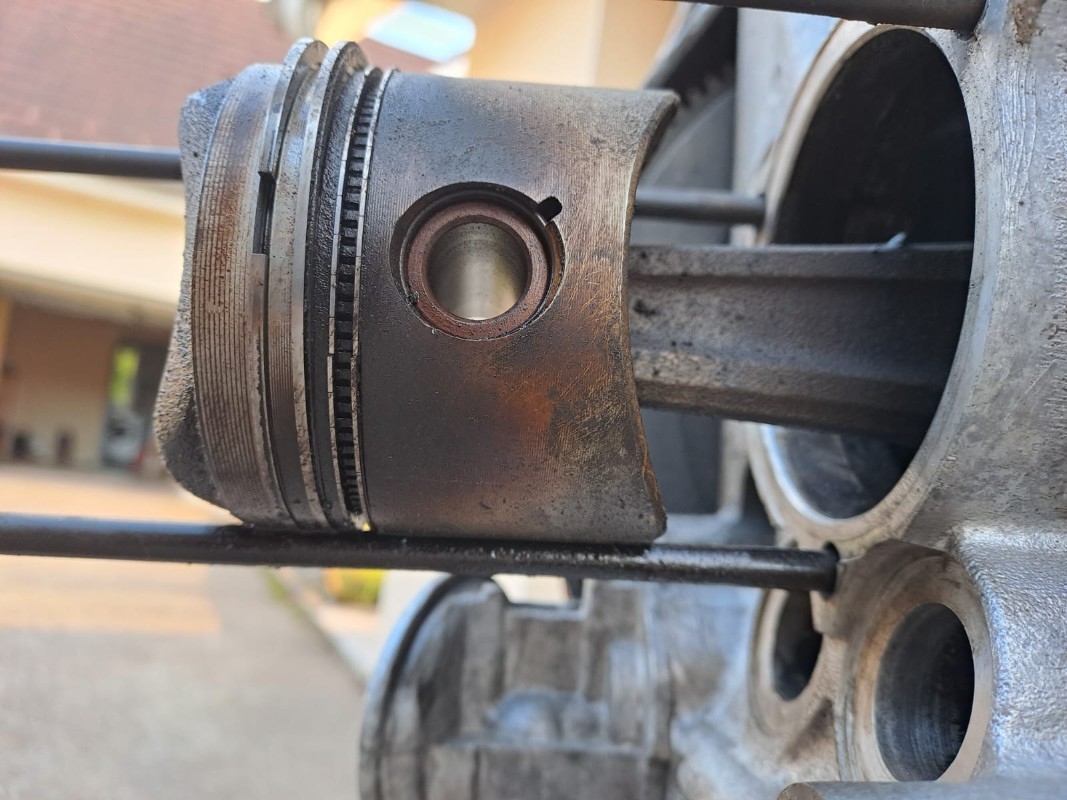 J'ai refait des photos cylindres / pistons : dingue le (bon) état malgré les kilomètres (132000) et le refroidissement (ailettes cylindres et filtre à huile bien 'obturés').... Après, à l'époque ou je roulais avec, je faisait beaucoup de trajets 'rapides' et pas trop de ville... Il n'y a d'ailleurs pas de calamine dans les culasses...