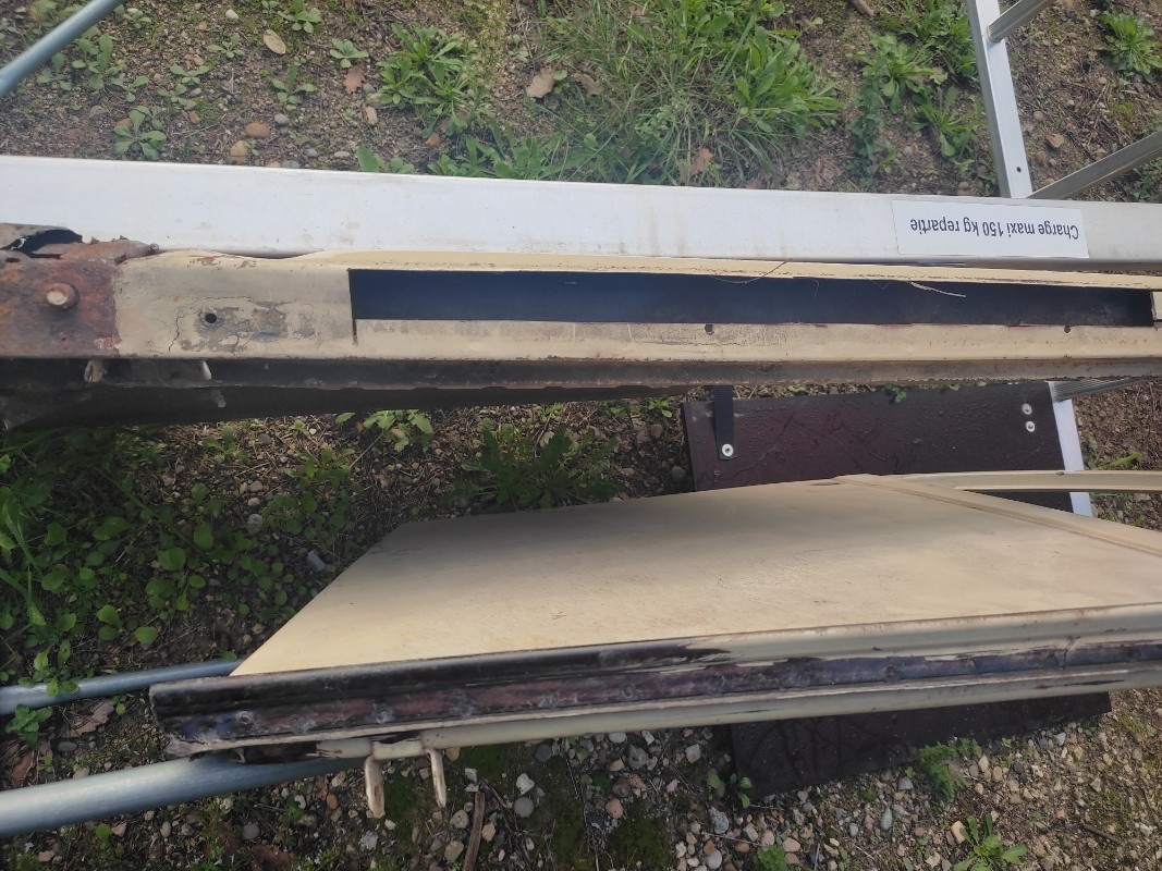 Je vais employer de la tôle neuve (feuillures achetées chez CIPERE), pour les bas des portes, ainsi que pour le couvercle de malle, vraiment en mauvais état.