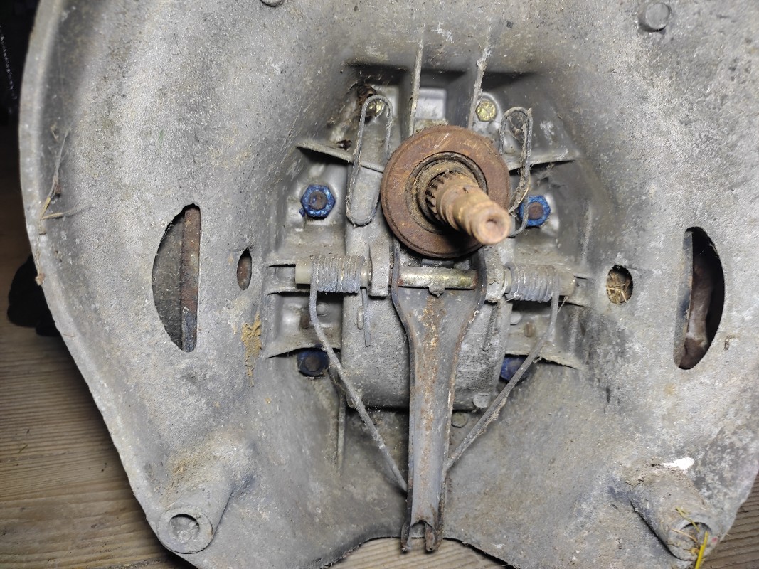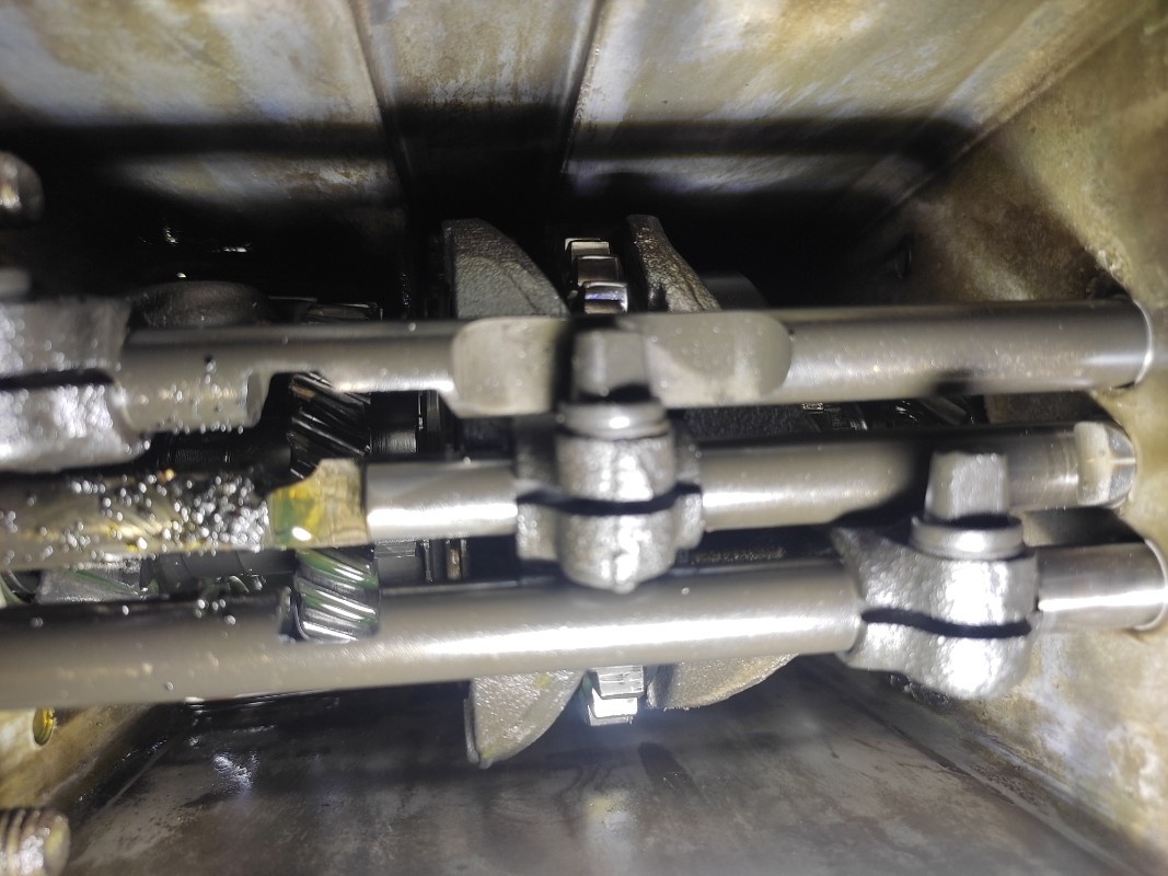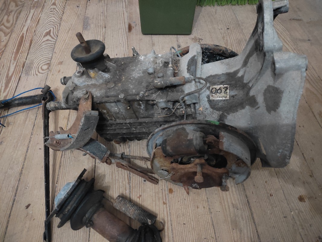 J'ai ouvert le couvercle de ma boîte, ça a pas l'air plutôt bien à l'intérieur., ce qui confirme ce que m'a dit le vendeur, son beau père avait voulu une boîte à disque et avait fait procéder au changement ce qui explique aussi que j'ai récupéré le levier de frein à main fixé au châssis. J'ai commencé le démontage du moteur sans difficulté, je compte l'ouvrir c'était un peu boueux dans les cache culbuteurs, je n' avait pas ouvert le précédent je n'étais pas assez sûr de moi. Il y au niveau du reniflard je pense le numéro d'appairage avec des initiales peut être celles de l'usineur ou simplement elles font partie du code ? Bonne fin de week-end