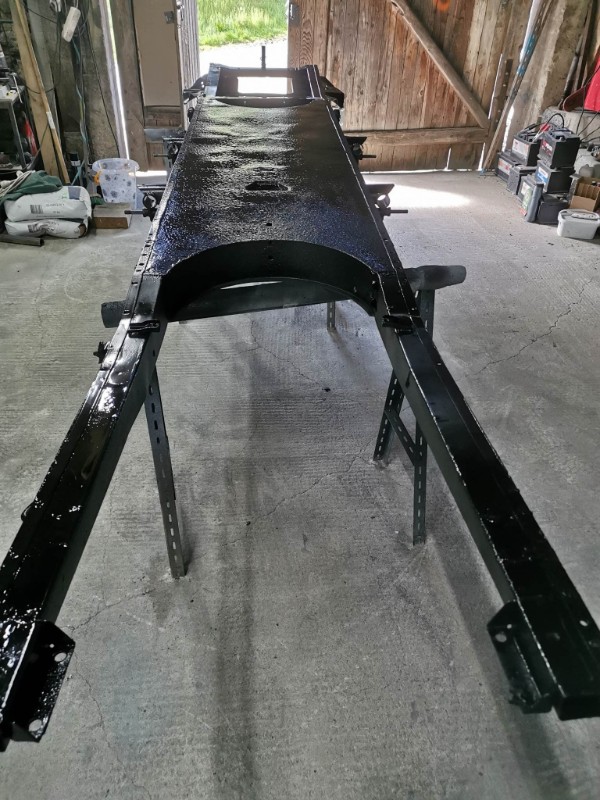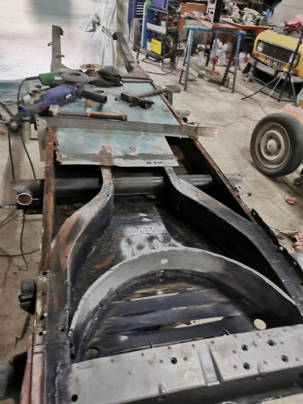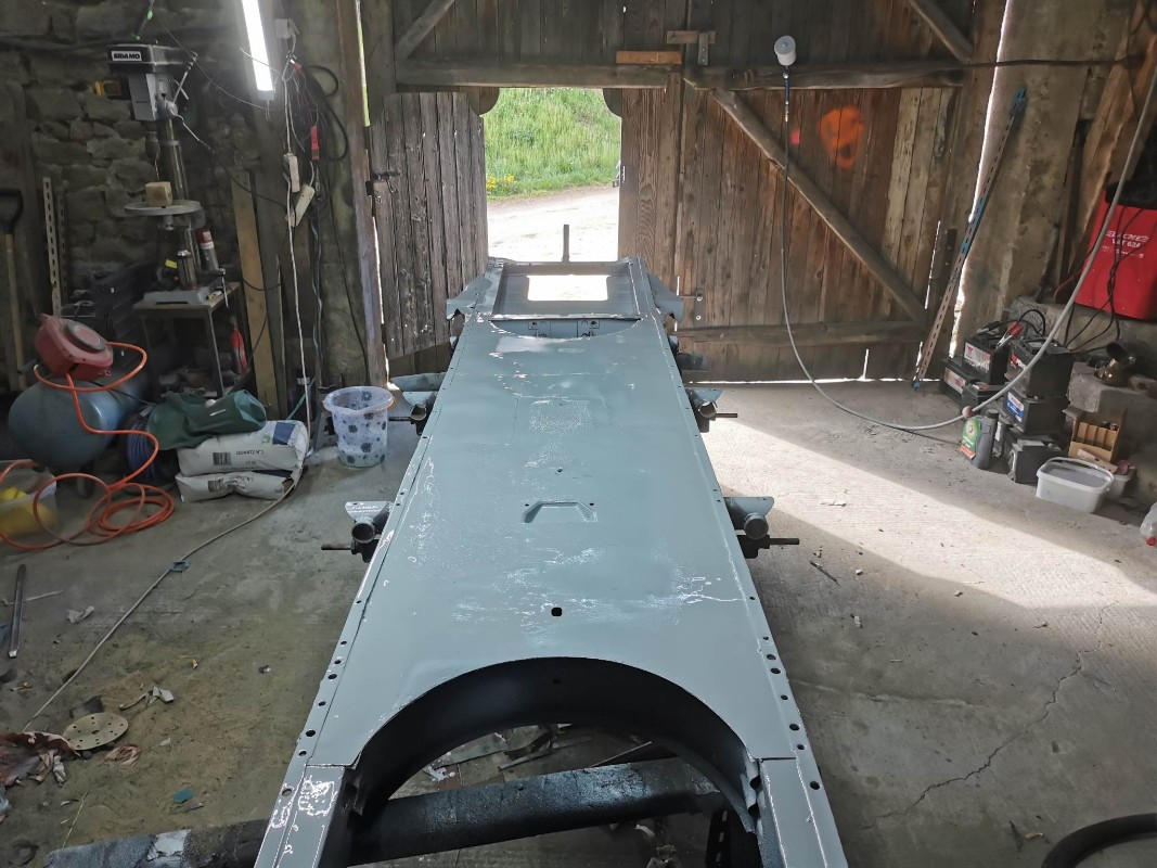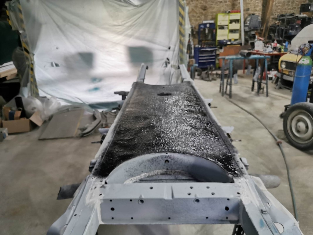 voila demain sera un autre jour mais pour ma part il reste ponçage de l'apprêt époxy masticage pose d'un joint étanche sur tout le long du châssis application de l'anti gravillon et mis en peinture est le châssis sera fini