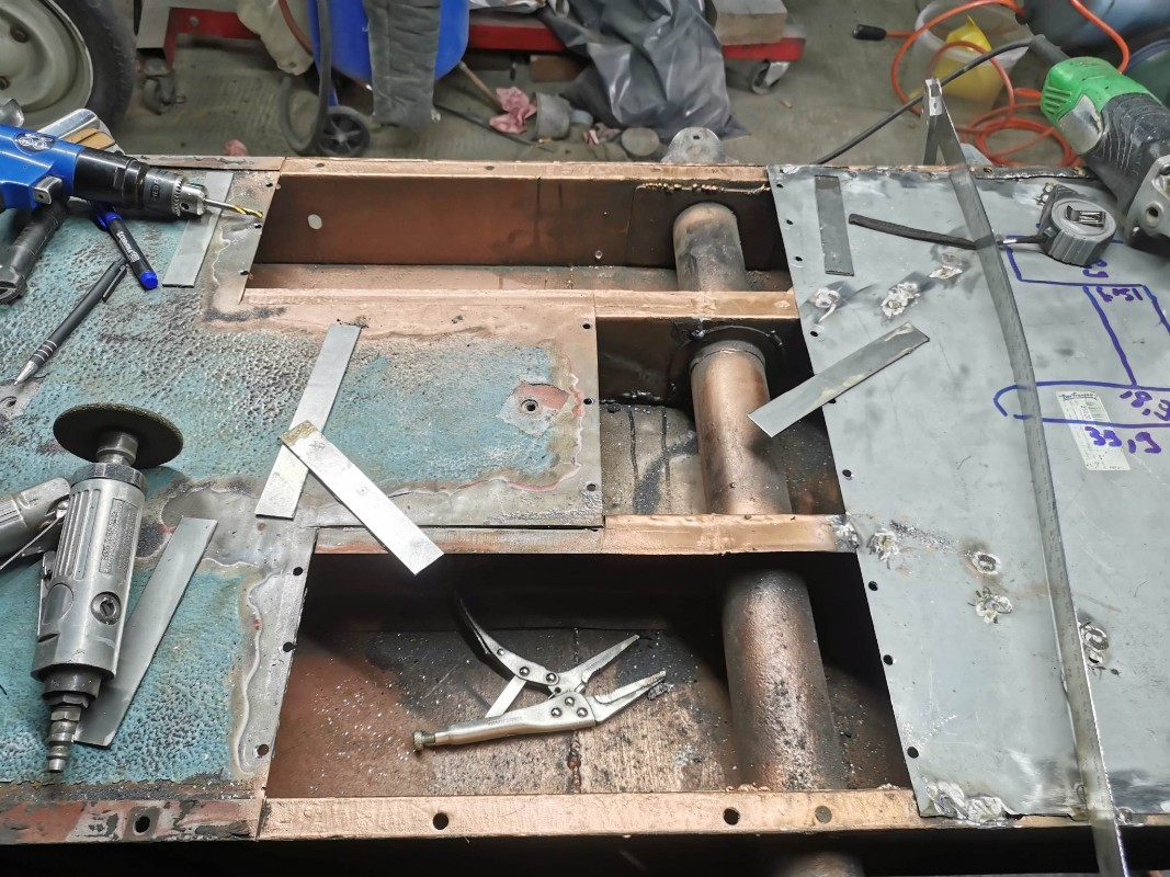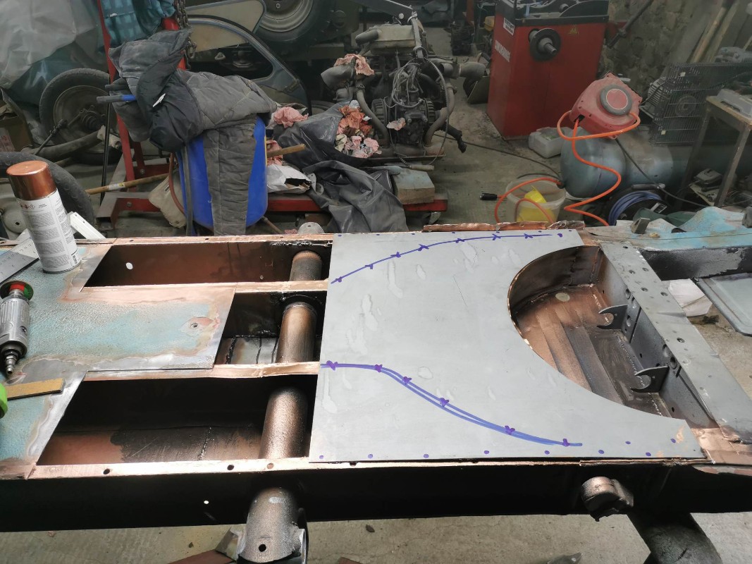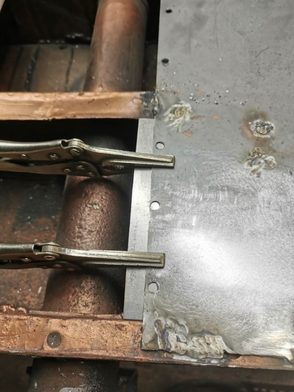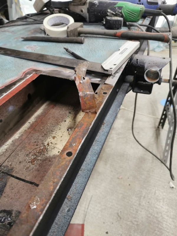préparation de petits bout de tôle et soudure a chaque extrémité de la nouvelle tôle et celle du châssis