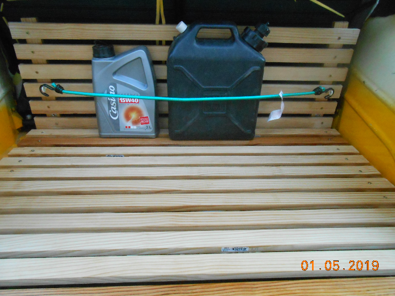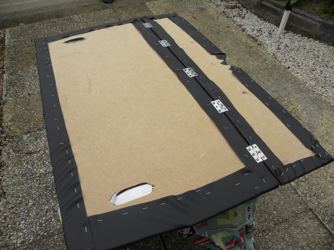 Note: Tu peux faire des lattes plus larges et plus épaisses en fonction du poids que tu dois transporter régulièrement. Renforcer le milieu par une troisième latte aussi. Aussi remplacer les équerres par des charnières, mais il faudra les fixer au dessus et elles seront visibles.