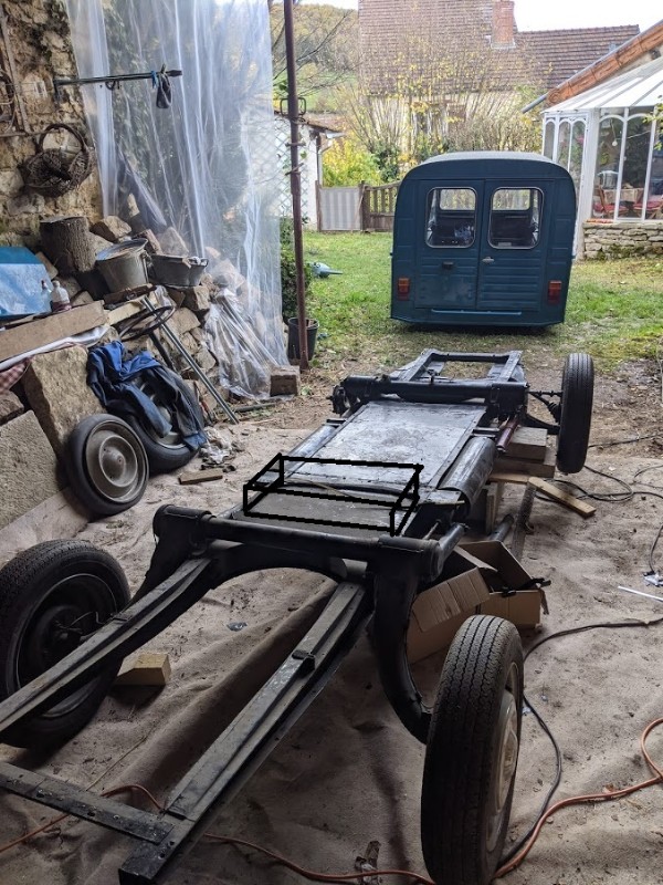 Personnellement je pense qu'il faut la mettre sur le toit ou dans une remorque ,Erka,tracter par la 2cv ,