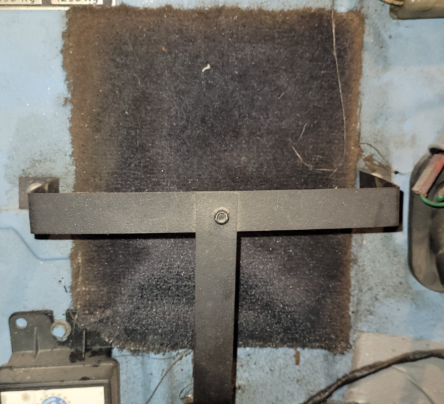 Il a mis un morceau de moquette pour éviter les vibrations du bidons... pas bête, sauf que l'ancien bidon avait une fuite donc il est imbibé d'huile... au moins la caisse ne rouiller pas à cet endroit.