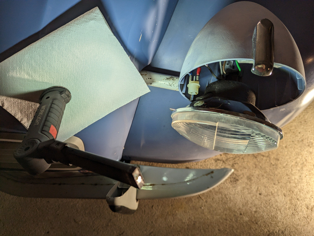 L'optique est démontée. Le support d'ampoule et l'ampoule sont inspectés.