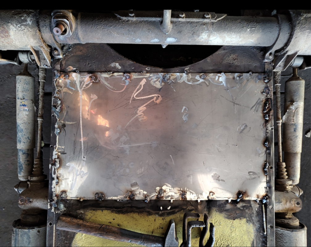 Bon probablement un bout de tôle à changer sur l'avant du châssis : j'espère pouvoir le changer sans tout devoir démonter...