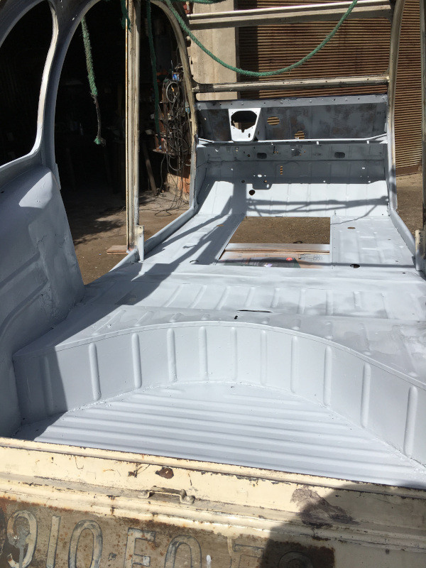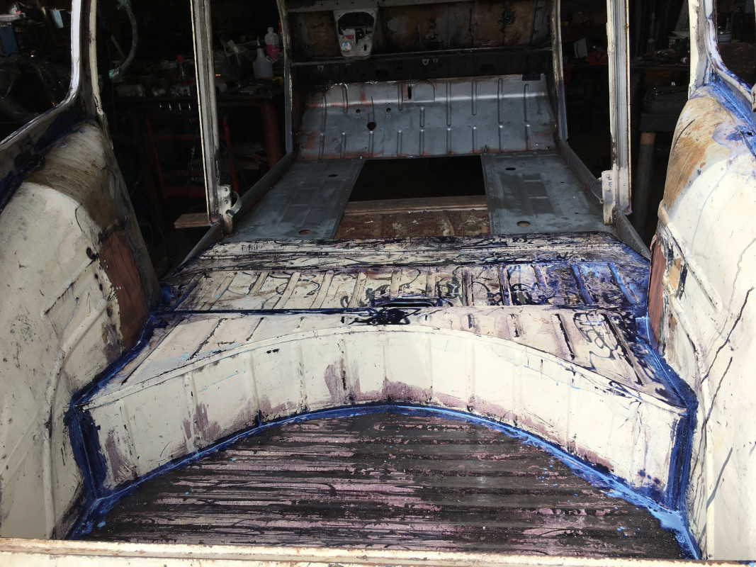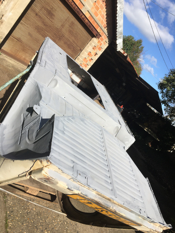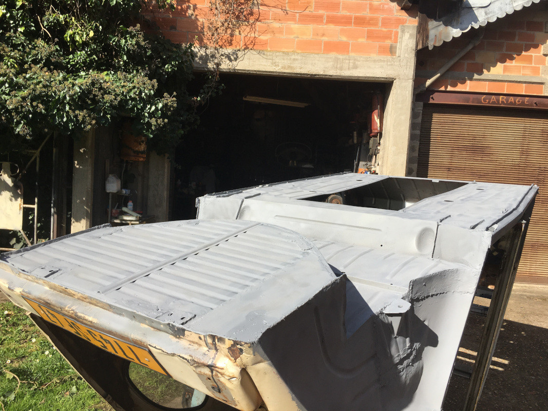 J'ai commencé par passer une petite couche supplémentaire de FEROSE pour mieux stabiliser tout départ de rouille J'ai poncé aussi l'intérieur des passages de roue, et les tôles au-dessus. Il me reste à préparer les planchers Si les températures prévues sont exactes, je passerai, jeudi prochain, la première couche d'apprêt époxy sur les faces intérieures des tôles neuves (planchers), et sans doute, un peu au-dessus.