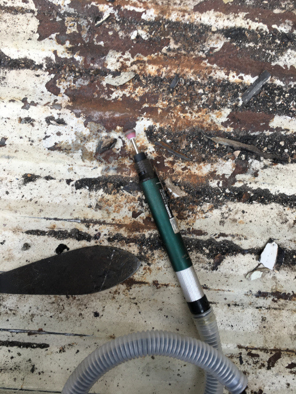 J'avais acquis dans le passé, une meuleuse pneumatique chez LIDL, qui a fait merveille, en utilisant des petites fraises, pour bien aller dans les angles, les bords et les tréfonds