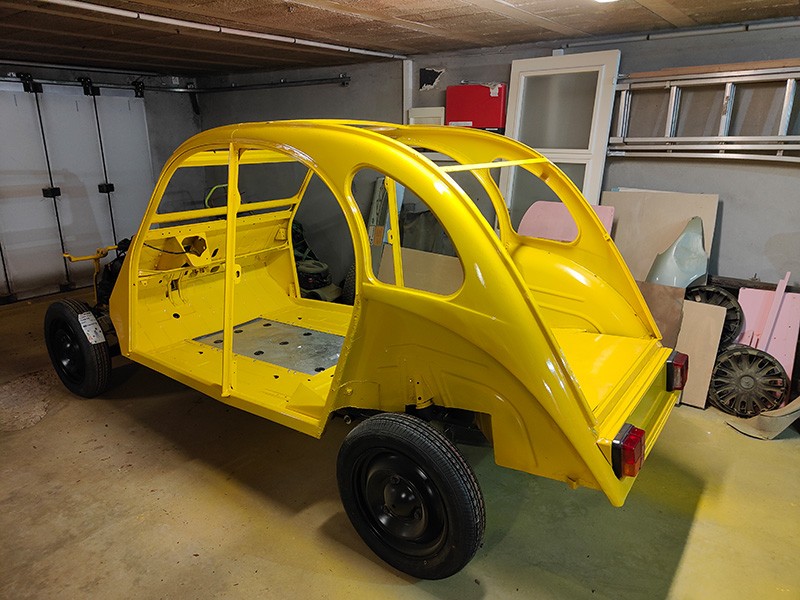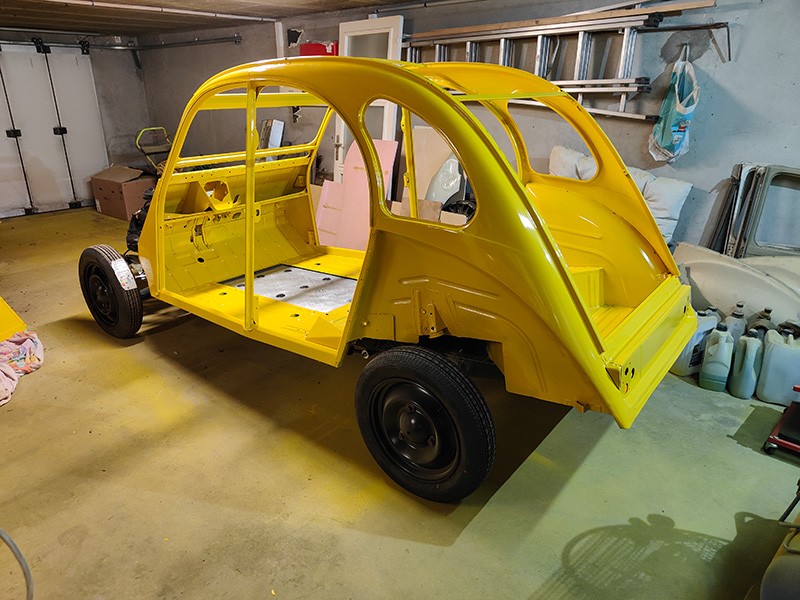 Comme c'est mon épouse qui a choisit la couleur jaune, c'est à elle également de me dire quelle couleur elle va choisir pour la sellerie, les garnitures de porte, feutrine et aussi la capote.