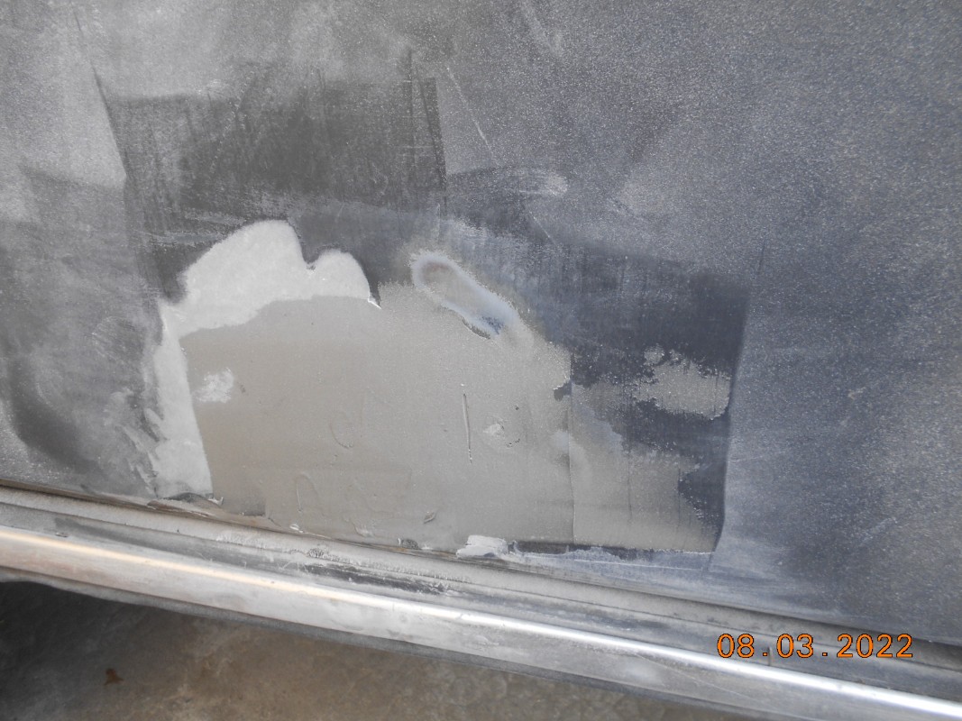 J'ai attaqué la correction d'une vieille cicatrice sur ma portière: Sans doute un gros pansement en sinto qui a fini par tomber !!