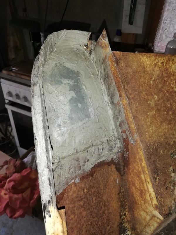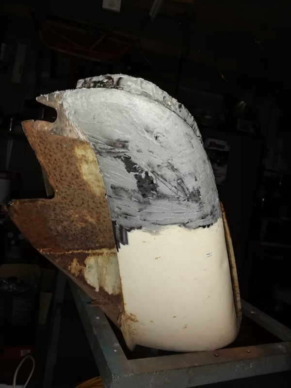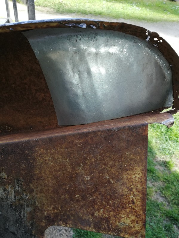 Il me reste à redresser quelques bosses et creux et boucher quelques autres trous à l'opposé toujours en apportant de la tôle neuve..