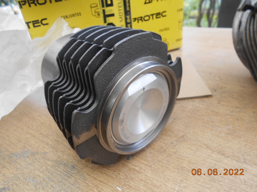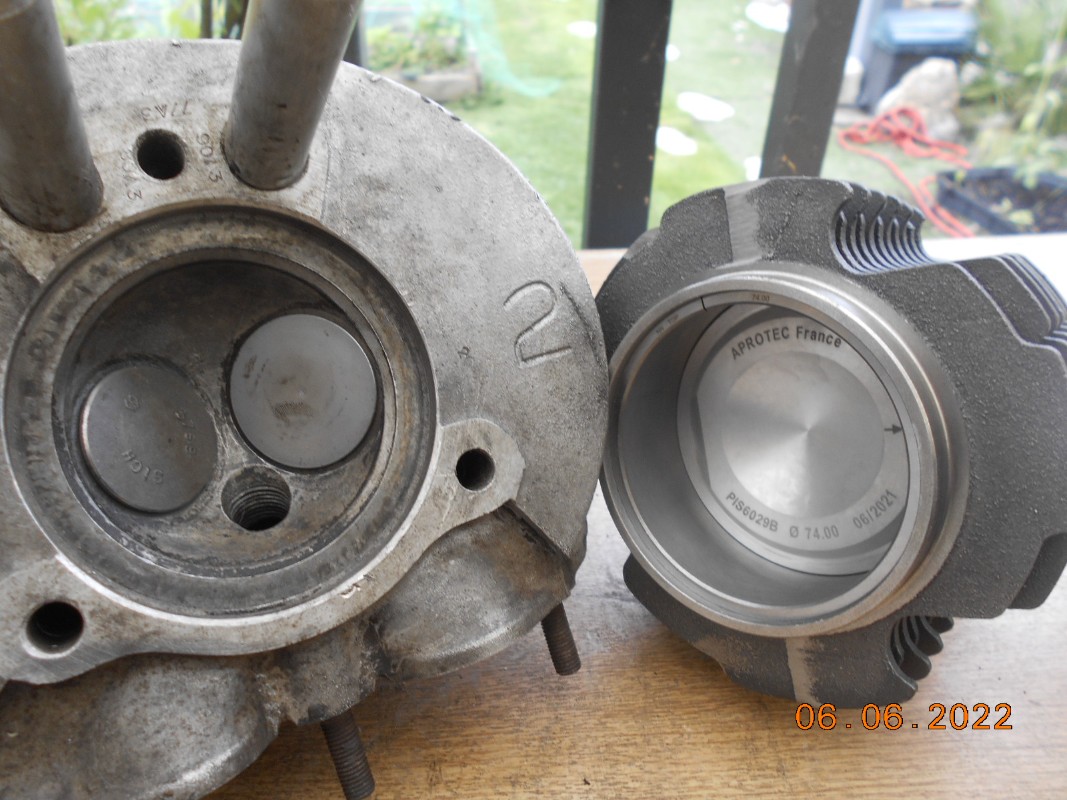 Les pistons du moteur à petites ailettes sont plats. Alors que ceux démontés eu moteur d'origine (sans doute changés) étaient bombés. Notez que j'ai repéré gauche et droite...