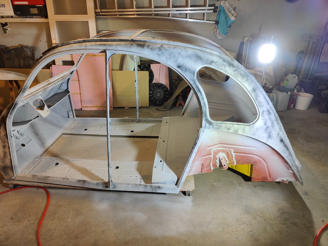 pour ce qui est de la caisse j'avais arrêter les travaux en mars 2019 et depuis elle était entreposer chez ma belle-mère en Vendée bien au sec !!. je l'ai ramener vendredi chez le carrossier et je l'ai re-poncer en intégralité car elle était sous apprêt basique et sous poussières !!!!.