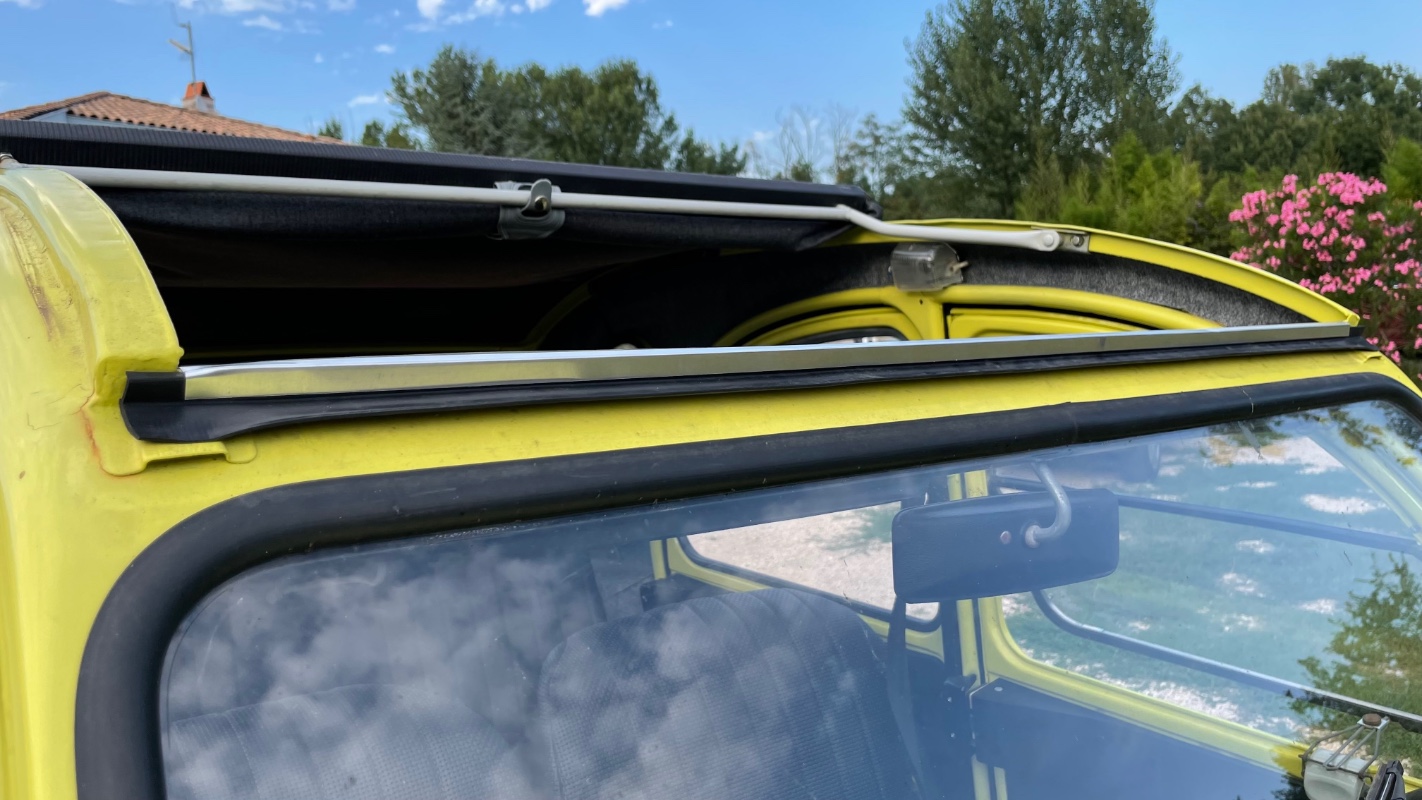 - il manque le joint d'étanchéité entre la capote et le haut du pare-brise, et sa baguette de fixation