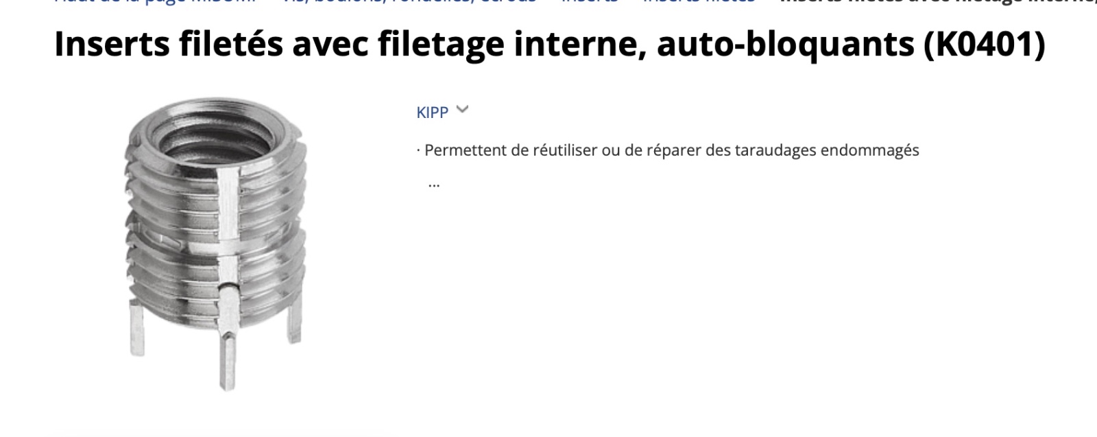 Je ne connaissais pas ces inserts auto-bloquants.