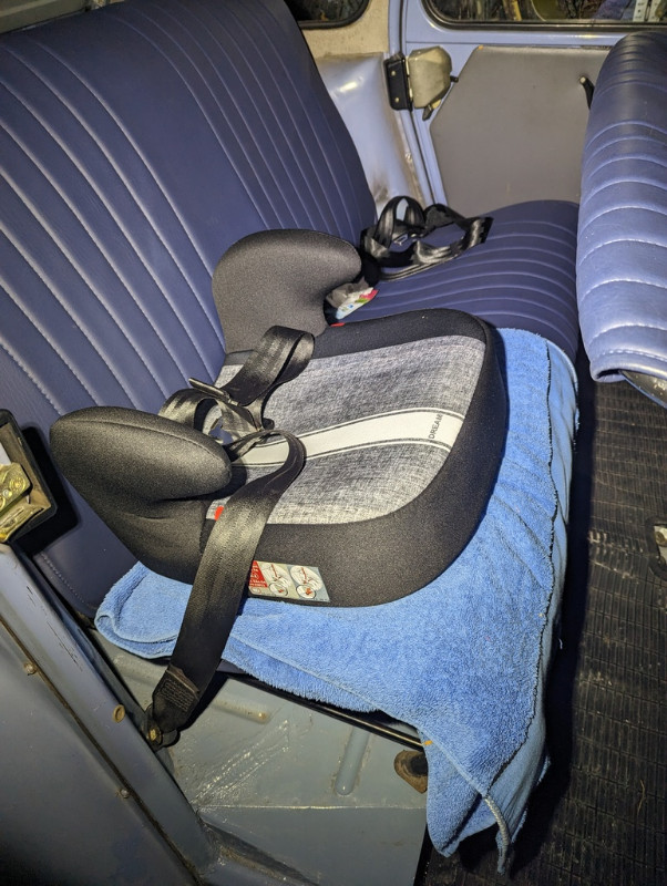 Enfin, j'aurais besoin d'une astuce pour éviter que ma Schtroumpfette qui adore les ballades en 2CV ne me salisse le dos de la banquette avant.