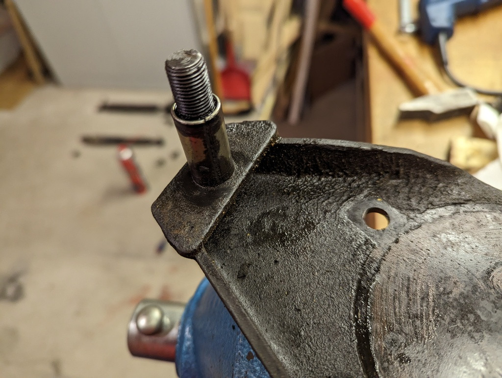 Je fignole à la lime plate et j'insère un ancien écrou pour vérifier que le filet n'est pas trop esquinté.