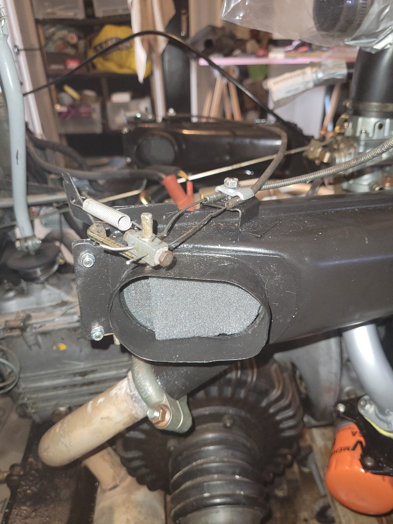 Pose de la boîte à air rénovée Pose de la nouvelle barre de phare, sans phares car il faut que je face une reprise de peintures.