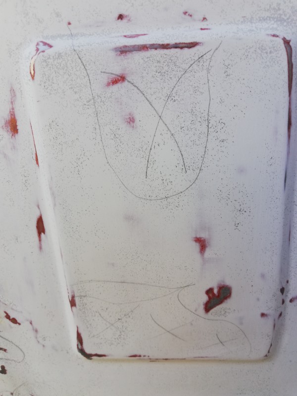 Après la préparation de la tôle, décapage total ou partiel suivant les endroits et la qualité de l'ancienne peinture j'ai passé un apprêt garnissant bi-composant de la marque Besa...c'est ce qu'on voit sur la caisse.