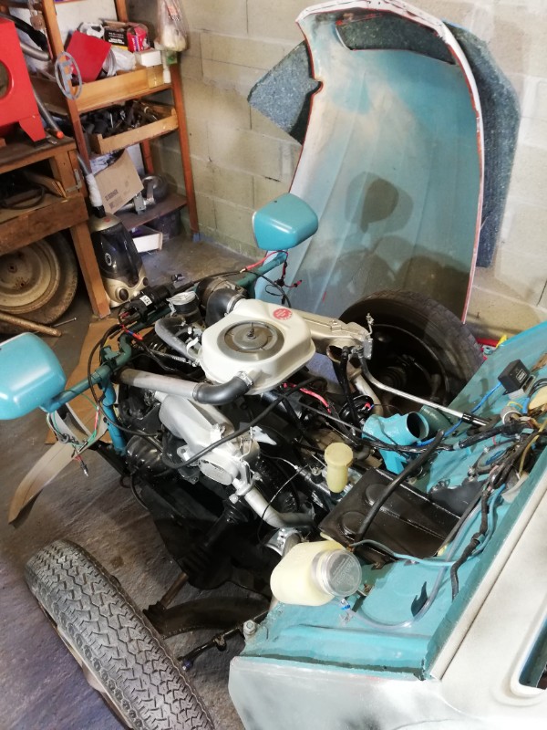 Après voilà le moteur et l'intérieur partiellement remonté car dans l'attente de la peinture finale : Pour le reste, ça attend son heure :