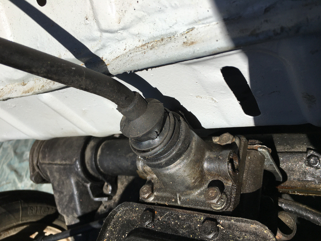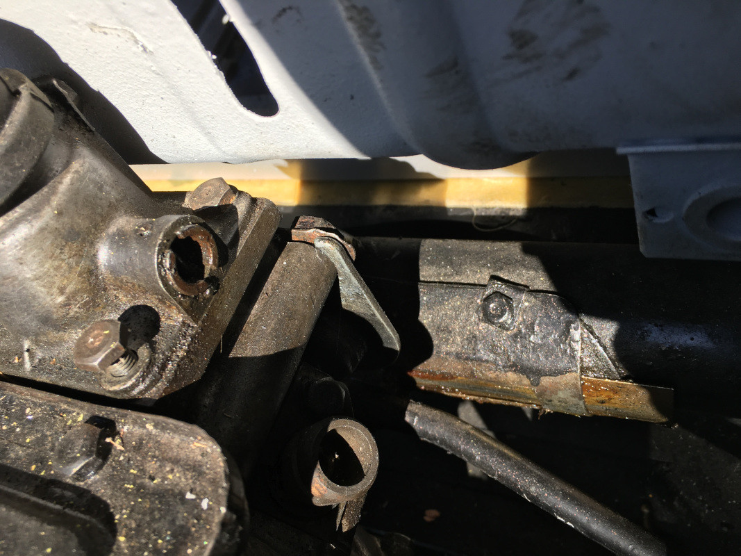Tous les éléments en-dessous étaient plus ou moins corrodés, j'ai du démonter la commande des vitesses, dont le levier était bloqué par l'oxydation de son guide !